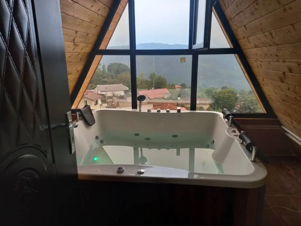 "اجاره کلبه چوبی جکوزی دار در لفور - دهکلان" این کلبه چوبی دو خوابه با دسترسی حدود 15 پله و حیاطی دنج به همراه جکوزی و بالکنی با چشم اندازی زیبا در روستای دهکلان با فاصله حدود 25 کیلومتری از شهر شیرگاه واقع شده است.طراحی این کلبه به صورتی است که دارای سالن پذیرایی، آشپزخانه و حمام با سرویس بهداشتی ایرانی و فرنگی در قسمت پایین می باشد و دو اتاق خواب و بالکن مجهز به جکوزی در قسمت بالا قرار دارد.اطراف حیاط دنج کلبه از چهار طرف با دیوار محصور است و میزبان در همسایگی سکونت دارد.به منظور تهیه مایحتاج روزانه، دسترسی به سوپرمارکت و نانوایی با پیمودن مسافتی در حدود 2 کیلومتر ممکن است.کیفیت آنتن دهی خطوط تلفن همراه در مکالمه خوب و پوشش شبکه اینترنت برای اپراتور ایرانسل به صورت 4g و برای اپراتور همراه اول به صورت 3g می باشد.لازم به ذکر است مسیر در 80 متر منتهی به اقامتگاه به صورت شن ریزی شده و قابل تردد با خودرو می باشد.شیرگاه یکی از شهر های زیبا و سرسبز مازندران به شمار می آید که مرکز سوادکوه می باشد و از جاذبه های این منطقه می توان به دریاچه لفور، آبشار گزو، غار زنگیان، دریاچه سنبل رود، روستای آلاشت . . . اشاره کرد که هر ساله طبیعت دوستان زیادی را به خود جلب می کند.