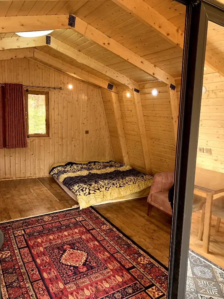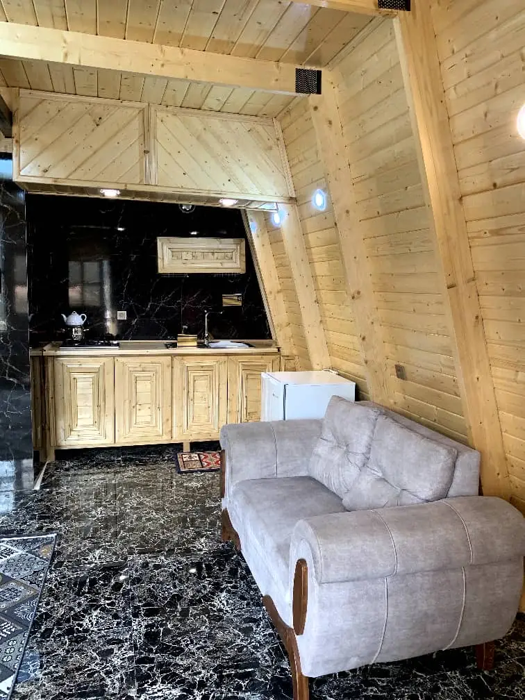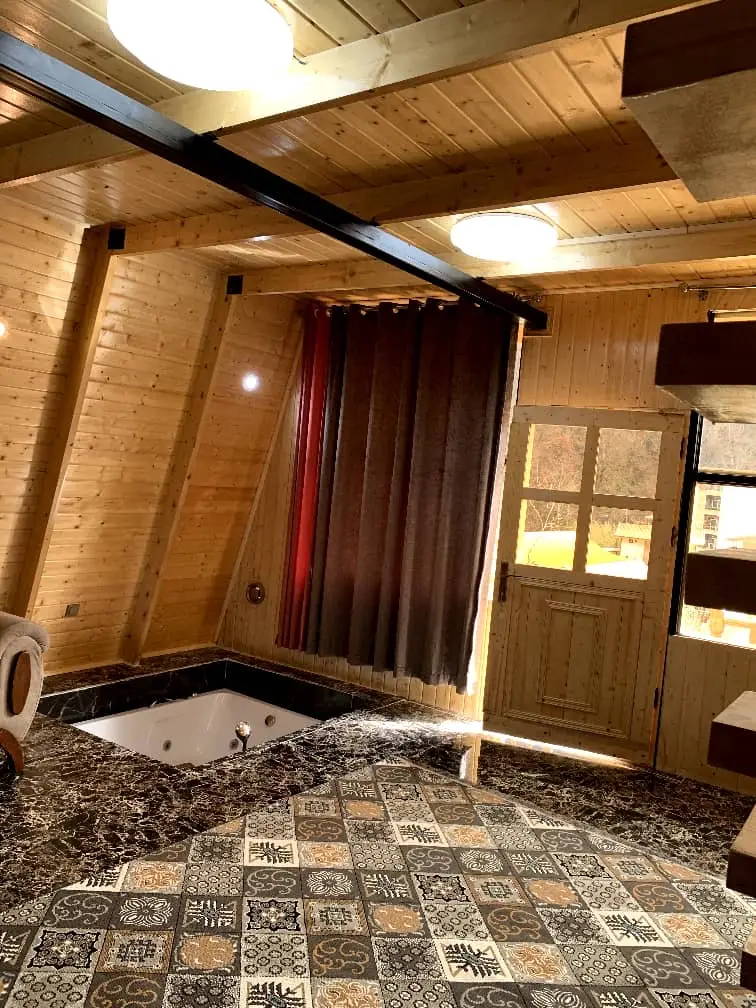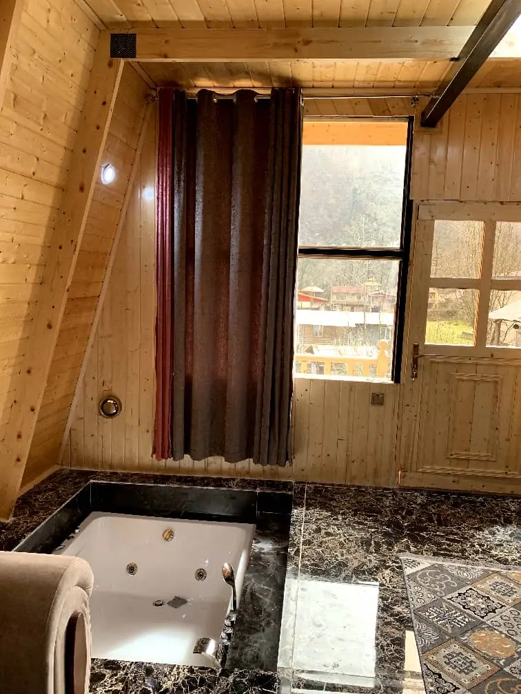 "اجاره کلبه سوئیسی جکوزی دار - لفور" این کلبه سوئیسی یکخوابه به همراه جکوزی با دسترسی حدود 8 پله در گوشه ای از جنگل های هیرکانی در یک مجموعه متشکل از پنج کلبه در روستای شاهکلا واقع شده و در فاصله حدود 20 کیلومتری از لفور و 40 کیلومتری شیرگاه قرار دارد.طراحی این کلبه به گونه ای است که طبقه پایین دارای پذیرایی، آشپزخانه، حمام و جکوزی، سرویس فرنگی با ایرانی می باشد و در طبقه بالا یک اتاق خواب بدون در و بالکن به همراه میز غذاخوری قرار دارد . محوطه اطراف کلبه با توجه به بافت روستایی منطقه از چهار طرف باز بوده و ورودی به صورت مشترک با سایر کلبه ها استفاده می شود، همچنین میزبان در همسایگی سکونت دارد. همچنین محوطه مجموعه دارای آلاچیق و باربیکیو بوده که به صورت مشترک بین تمامی کلبه ها مورد استفاده قرار می گیرد. مهمانان گرامی می توانند برای تهیه مایحتاج روزانه خود از سوپرمارکت و نانوایی در فاصله 500 الی یک کیلومتر استفاده نمایند. آنتن دهی تلفن همراه برای اپراتور ایرانسل خوب و اینترنت به صورت 4g در دسترس می باشد، اما اپراتور همراه اول فاقد آنتن دهی مناسب می باشد. لازم به ذکر است حدود یک کیلومتر از مسیر منتهی به اقامتگاه به صورت جاده خاکی است.