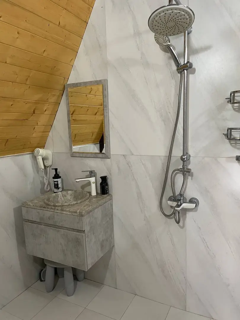 "اجاره کلبه سوئیسی در قائمشهر - واسکس" این کلبه سوئیسی دو خوابه با حیاطی دلباز و محوطه سازی شده به همراه تاب ریلکسی و میز فوتبال دستی در محیطی دنج و آرام از روستای خوش آب و هوای واسکس واقع شده است که تا قائمشهر حدود 8 کیلومتر فاصله دارد.طراحی این کلبه به گونه ای است که در طبقه پایین دارای پذیرایی، آشپزخانه، یک اتاق خواب، و حمام، سرویس فرنگی و سرویس ایرانی می باشد، همچنین در طبقه بالا یک اتاق خواب بدون در و بالکن قرار دارد.حیاط کلبه با توجه به بافت روستایی منطقه به وسیله فنس و دیوار محصور است و سرایدار در همسایگی سکونت دارد.مهمانان گرامی می توانند برای تهیه مایحتاج روزانه خود از سوپرمارکت و نانوایی در فاصله حدود 700 متری کلبه استفاده نمایند.همچنین ویلا مجهز به موتور برق است که در زمان قطعی برق، علاوه بر روشنایی اقامتگاه، اسپیلت را نیز راهاندازی میکند.همچنین ویلا مجهز به موتور برق است که در زمان قطعی برق، علاوه بر روشنایی اقامتگاه، اسپیلت را نیز راهاندازی میکند.لازم به ذکر است مسیر در 500 متر منتهی به اقامتگاه به صورت جاده خاکی و قابل تردد با خودرو می باشد.