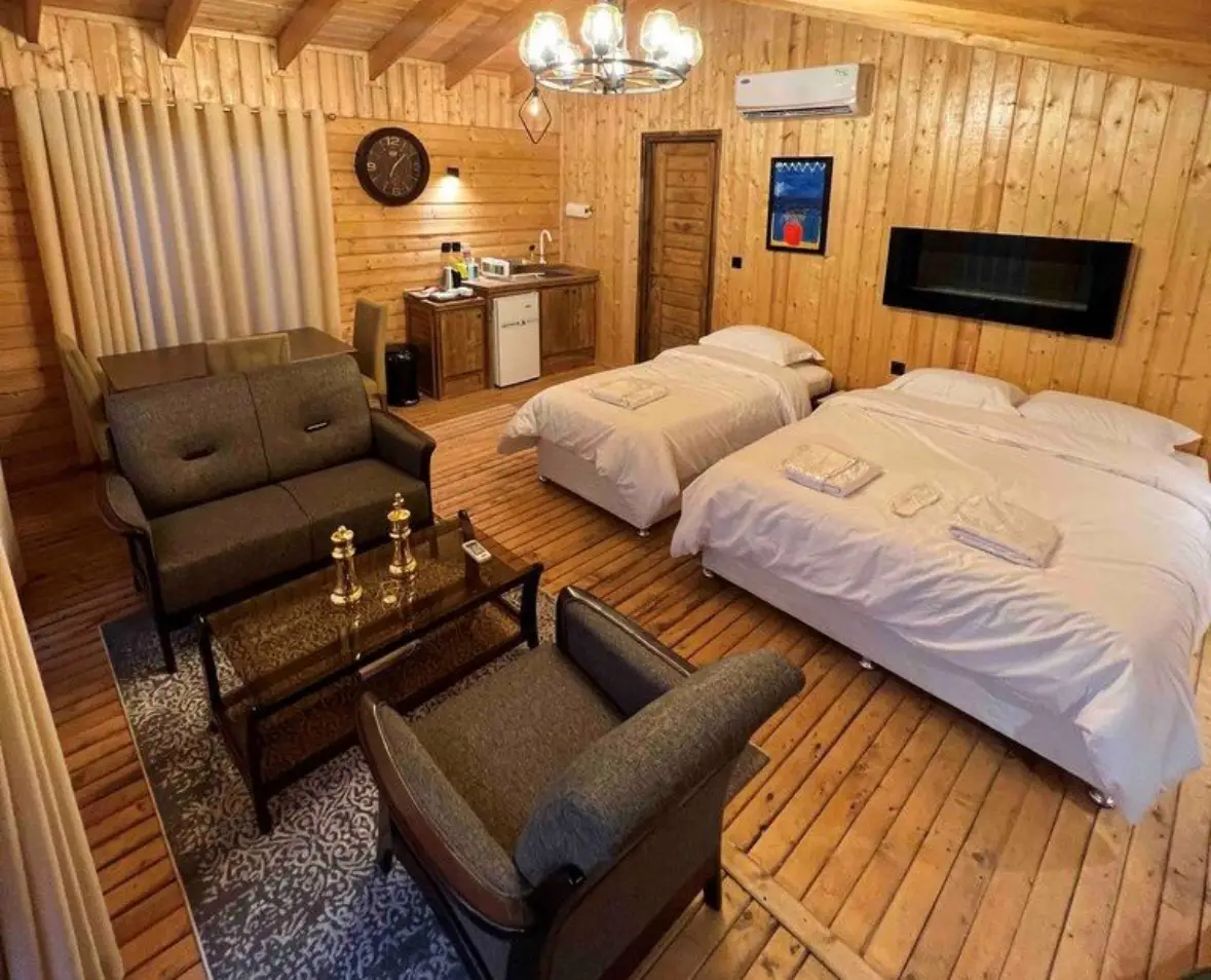 " اجاره کلبه چوبی در سوادکوه - کلبه 3 " این کلبه چوبی بدون اتاق خواب در محوطه ای 1000 متری در جوار دو کلبه دیگر با تراس و چشم انداز بینظیر جنگل و رودخانه در نزدیک سد لفور و در فاصله حدود 20 کیلومتری شهر شیرگاه واقع شده است. کلبه با طراحی دلنشین چوبی دارای نشیمن، یک تخت دبل، یک تخت سینگل، آشپزخانه، حمام و سرویس فرنگی و تراسی رو به طبیعت چشم نواز با میز و صندلی و سایبان می باشد که می توانید اوقات بیادماندنی را در سکوت جنگل و البته صدای گوش نواز رودخانه تجربه نمائید. محوطه سرسبز و جنگلی اطراف اقامتگاه که محصور هم نیست بصورت مشترک با سرایدار و میهمانان کلبه های دیگر مورد استفاده قرار می گیرد و ضمنا جهت حفظ امنیت کل محوطه مجهز به دوربین مداربسته نیز می باشد. همچنین با پیمودن 700 متر الی 2 کیلومتر به سوپرمارکت و نانوایی دسترسی خواهید داشت. پوشش شبکه تلفن همراه برای دو اپراتور ایرانسل و همراه اول در مکالمه خوب و دسترسی به اینترنت نیز به صورت 4g می باشد، همچنین وای فای رایگان در اختیار مهمانان قرار می گیرد. منطقه لفور با جنگل های انبوه و جاذبه های طبیعی بسیار و برخورداری از آب و هوای دل انگیز و پاک همواره مقصد گردشگران بسیاری از سراسر ایران می باشد. آبشارهای طبیعی و خروشان نظیر هفت آبشار، گزو، پلنگدره با حوضچه های سنگی، سد لفور بخشی از این دیدنی ها می باشد.