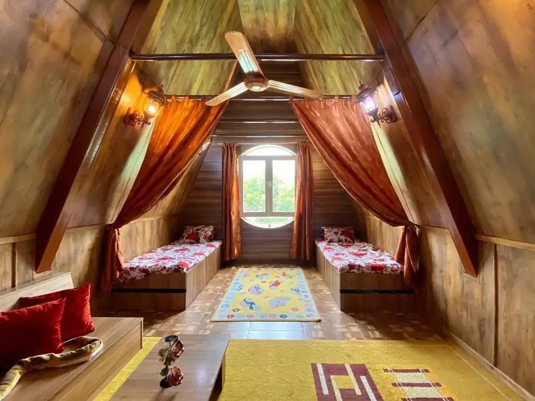 "کلبه چوبی استخر دار در قائم شهر - وسطی کلا" این کلبه چوبی یکخوابه با استخر سرپوشیده، تراس، ایوان و حیاط زیبا در منطقه ای دنج و آرام از روستای وسطی کلا با حدود 5 کیلومتر فاصله از مرکز شهر قائم شهر واقع شده است.این کلبه چوبی به صورت یک سالن پذیرایی، یک آشپزخانه و یک سرویس بهداشتی ایرانی در طبقه اول و یک اتاق خواب به همراه یک سرویس بهداشتی فرنگی و حمام در طبقه دوم در اختیار میهمانان می باشد. محیط اطراف حیاط زیبا کلبه نیز با دیواری که از بیرون مشرف نیست، محصور می باشد و دسترسی به نانوایی و سوپرمارکت با حدود 3 دقیقه رانندگی از اقامتگاه میسر است.50 متر انتهایی مسیر این کلبه به صورت خاکی می باشد اما این مسیر با هر نوع وسیله نقلیه ای قابل دسترسی می باشد. کیفیت پوشش شبکه تلفن همراه برای دو اپراتور ایرانسل و همراه اول در مکالمه عالی و دسترسی به اینترنت به صورت 4g می باشد.بافت روستایی و جنگلی منطقه با داشتن چشمه آب درمانی،پارک جنگلی و مرداب قادیکلا، امامزاده و امکانات تفریحی مثل آب بندان و قایق پدالی شرایط فوق العادهای را برای گردش میهمانان گرامی فراهم آورده است. تپه گردکوه قائم شهر و پارک جنگلی تلار و منطقه پلنگ دره نیز قابل دسترسی از این اقامتگاه می باشد.